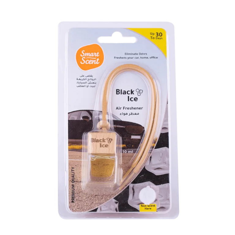 • الرائحة: بلاك ايس, يجدد وينعش الهواء في السيارة أو المكان يترك المكان معطراً
