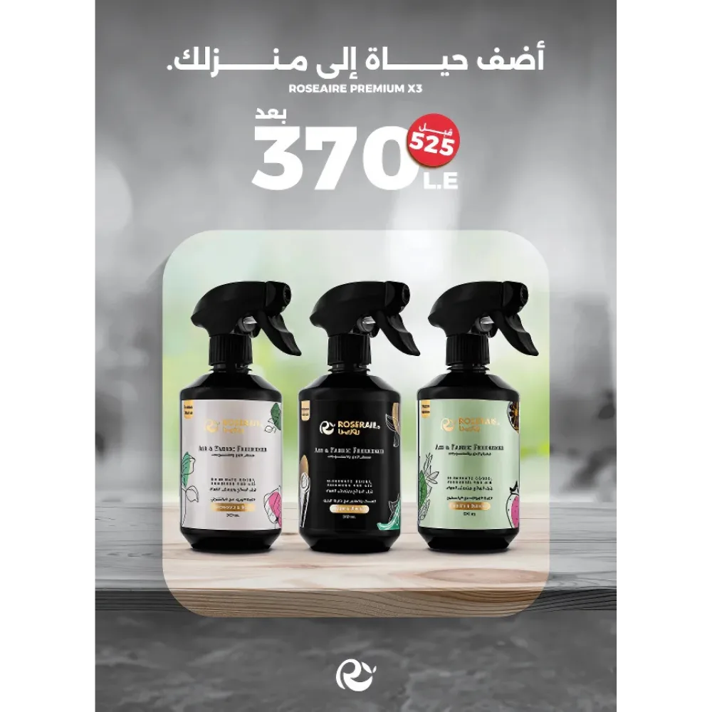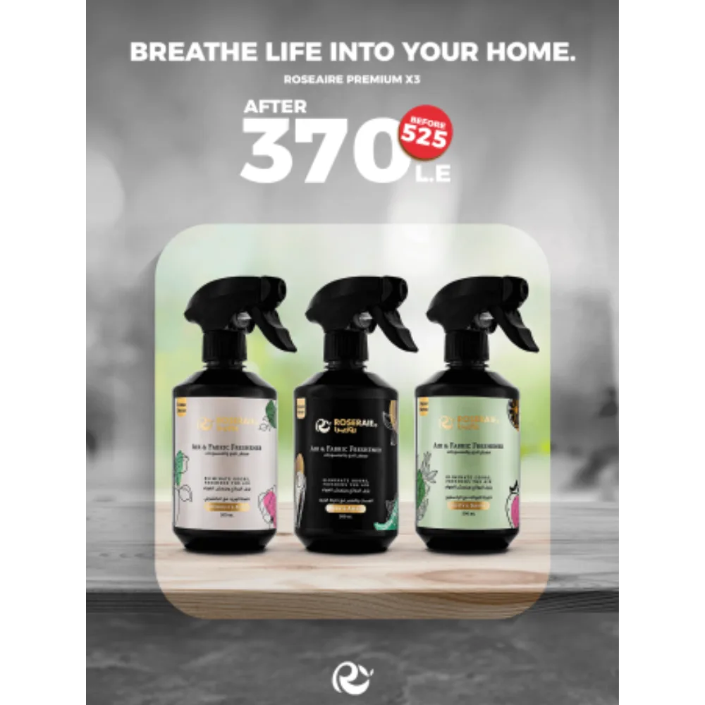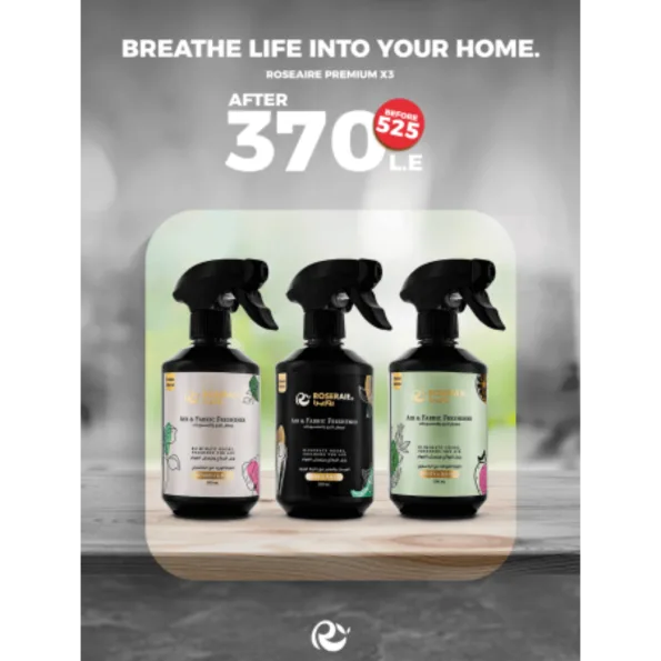 - التي تضم 3 معطرات للجو والمفروشات بحجم 500 مل لكل منها.