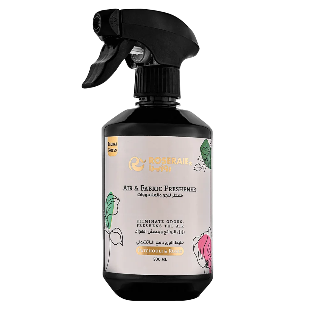 - معطر للجو والمنسوجات خليط الورود والباتشولي حجم 500 مل.